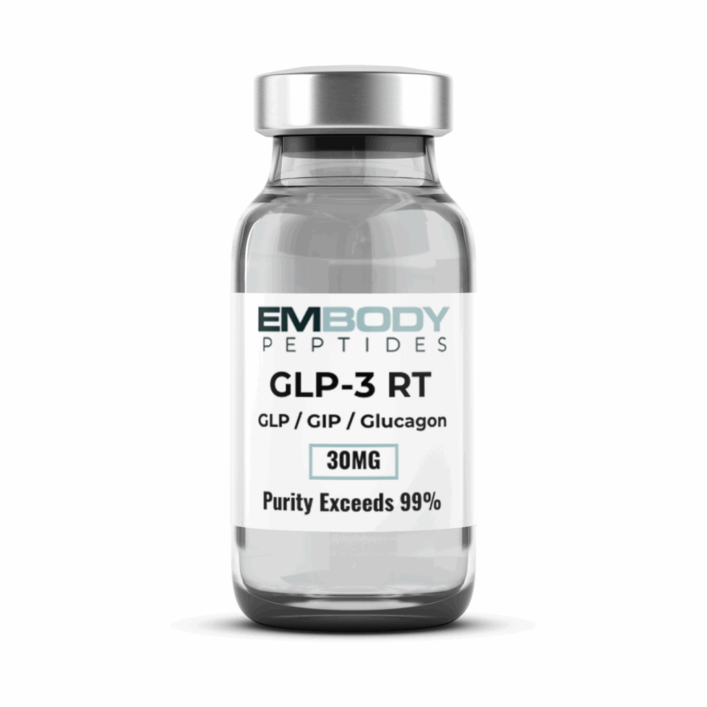 GLP-3 RT is a GGG tri-agonist that targets GLP-1 and GIP receptors, akin to standard GLP-1 agonists, but also uniquely activates the glucagon receptor. This extra receptor interaction enhances glucagon production, leading to the breakdown of stored fats and glycogen, thereby increasing basal metabolism for more consistent fat loss. Its actions on GLP-1 and GIP receptors promote delayed gastric emptying and appetite control, offering a comprehensive approach to obesity research distinct from older GLP-1 agonists. Further research is required.