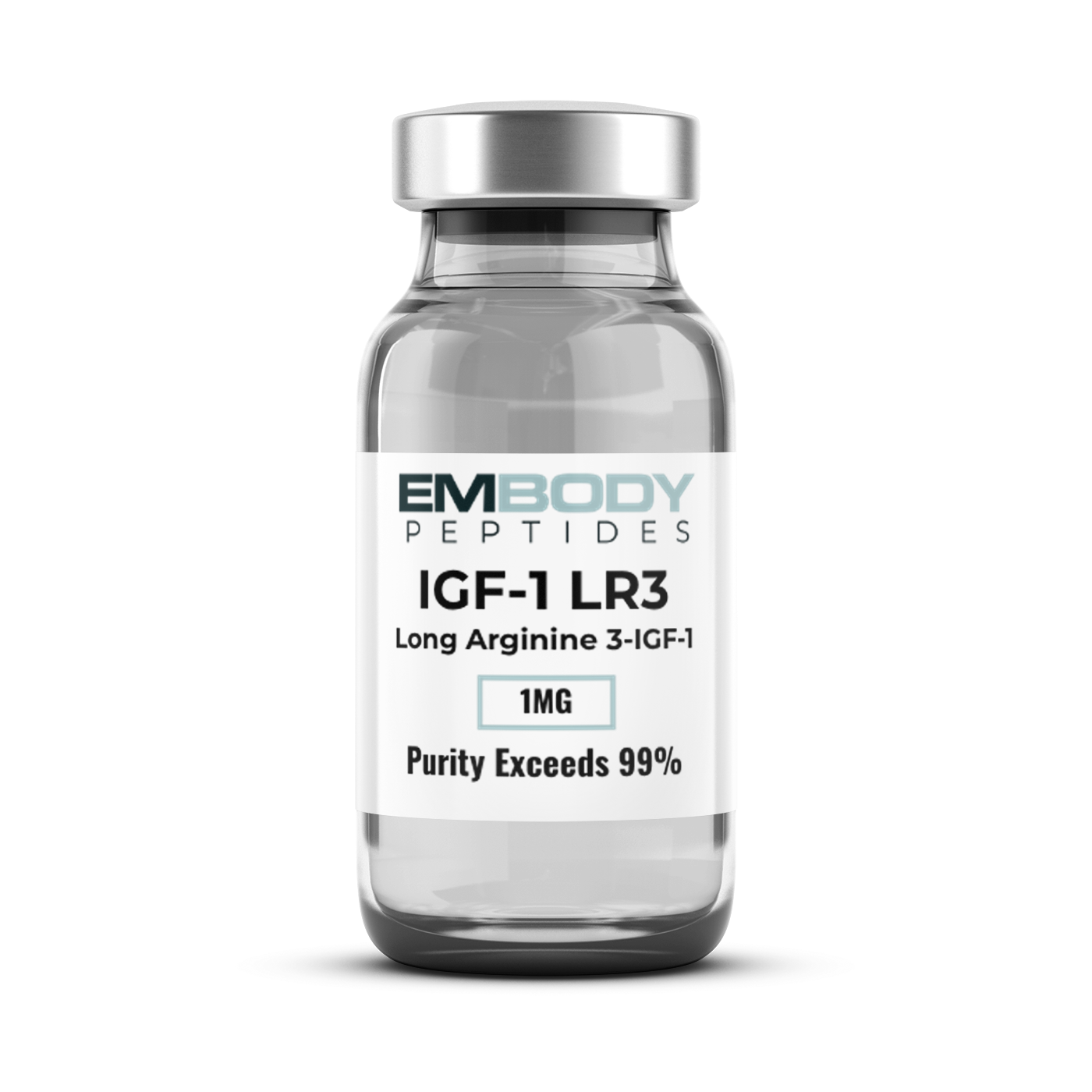 IGF-1 LR3 (insulin-like growth factor-1 long arginine 3) is a synthetic, modified construct of insulin-like growth factor-1. Because IGF-1 LR3 does not bind to IGF-1 binding proteins very well, it remains active up to 120 times longer than standard IGF-1. This results in improved half-life for the peptide and thus increased activity. IGF-1 LR3 enhances cell division and growth, boosts fat metabolism, and increases muscle repair and hypertrophy by inhibiting myostatin. Recent research suggests that IGF-1 LR3 may also be useful in improving lactation among mothers with young offspring.
