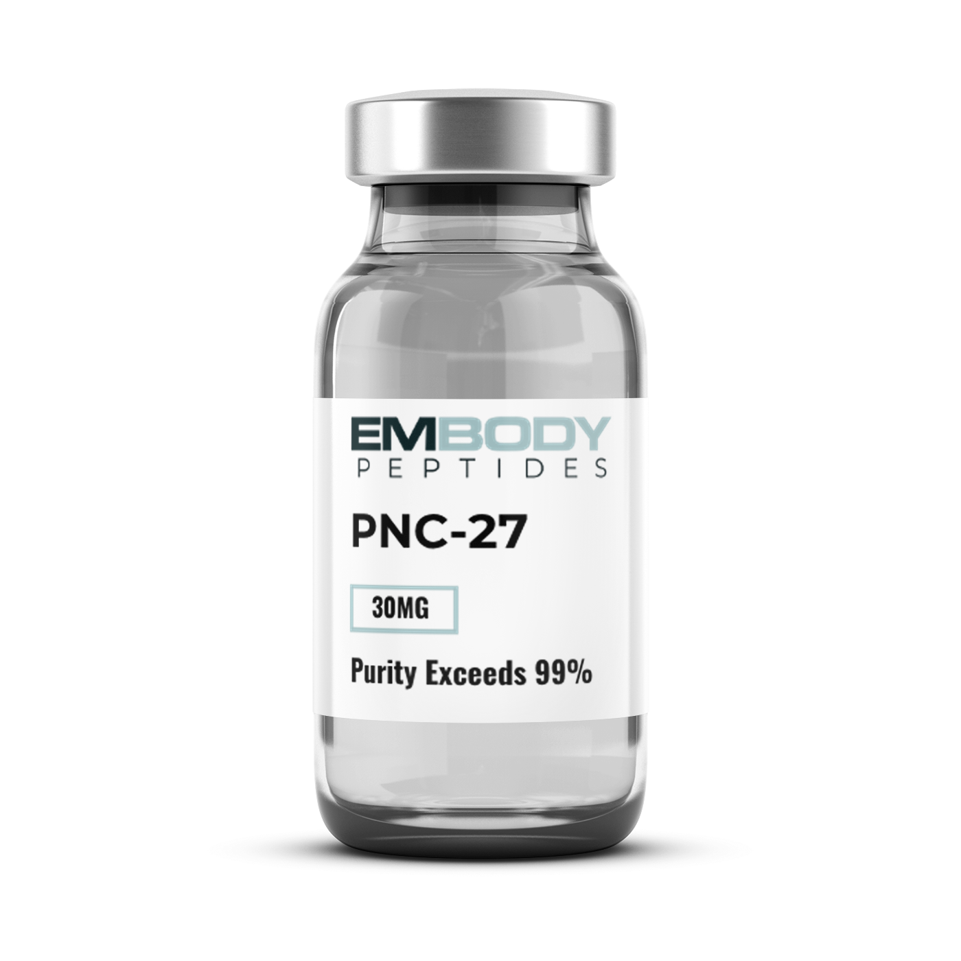 PNC-27 is a synthetic anti-cancer peptide that binds HDM-2 and thus prevents its interaction with the p53 tumor suppressor protein. Research shows that it selectively kills cancer cells by inducing membranolysis (destruction of the cell membrane).